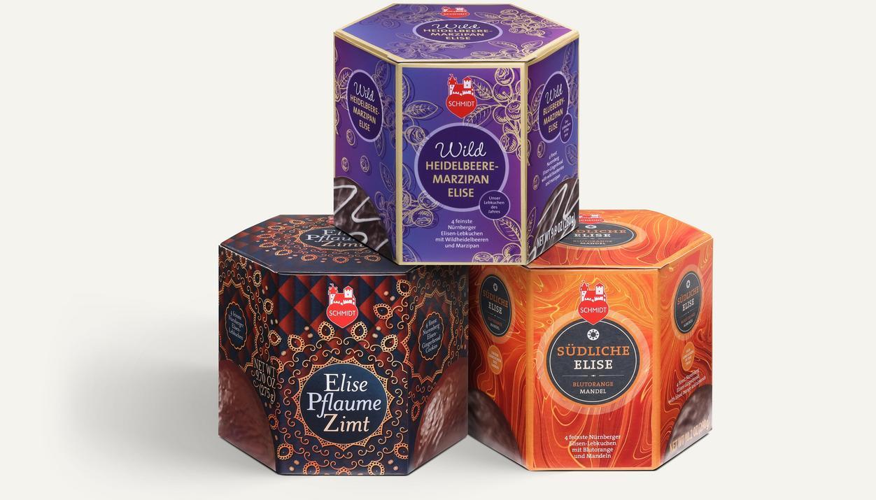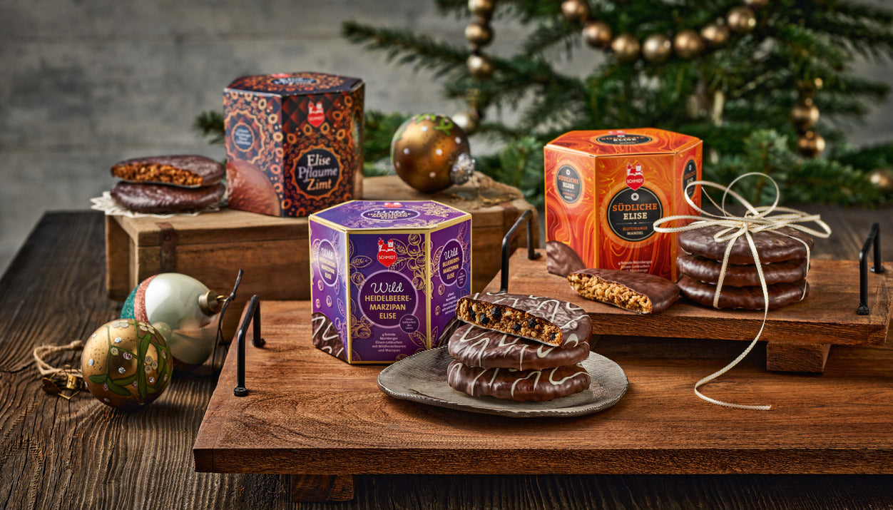 A trinity of exquisite taste awaits you in this biscuit speciality set from Lebkuchen-Schmidt: Southern Elise, Finest Plum Cinnamon Elises and our brand new Gingerbread of the Year: Wild Blueberry Marzipan Elise: fruity wild blueberry and the finest marzipan
